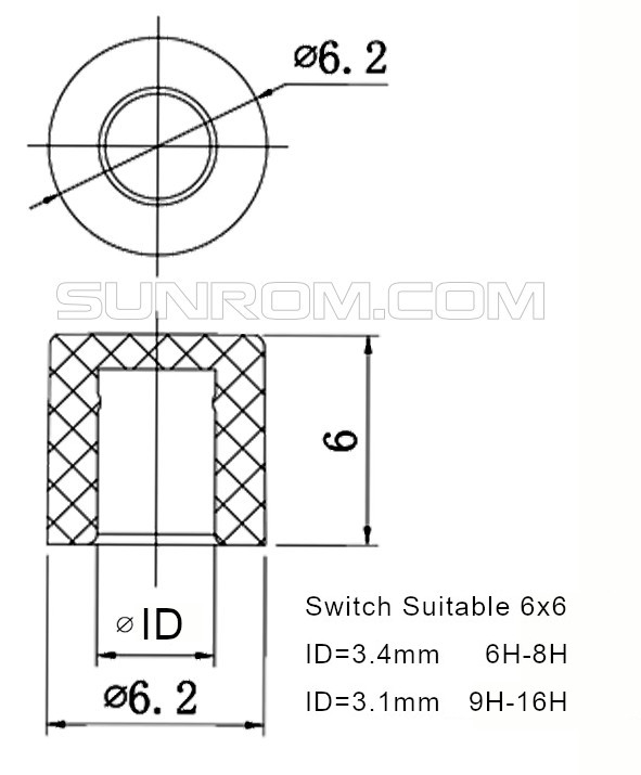 Press fit to standard 6x6mm tactile switches