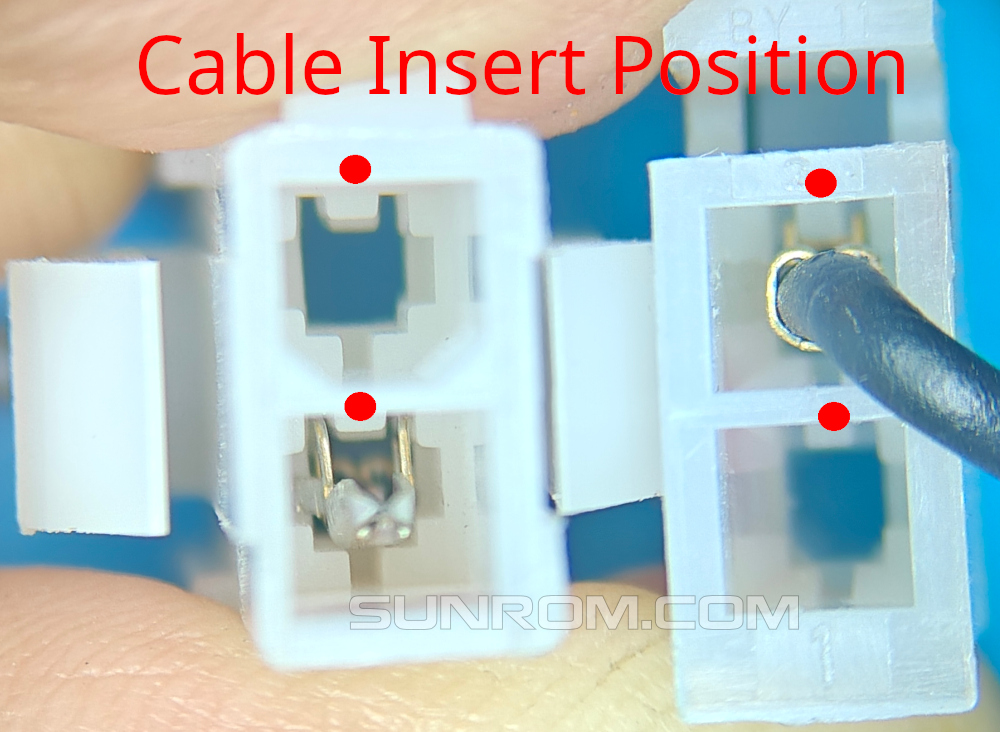 Note: There is only one way to insert the cable, The Notch marked in Red is where the crimped cable top part goes inside.