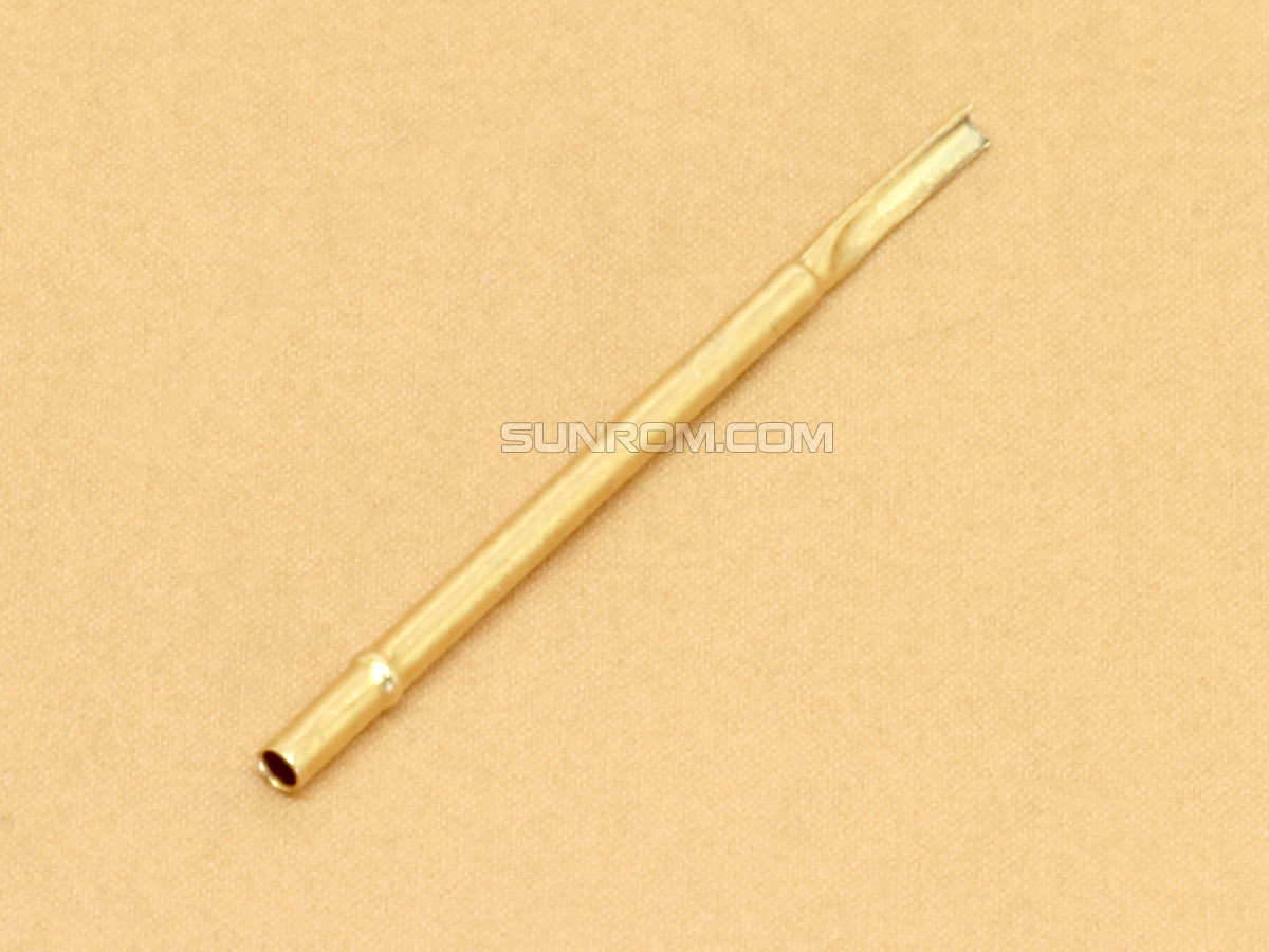 Hollow cavity accepts spring loaded male test probe so you can easily remove and replace in a test jig. One side of female is fixed in tests jig soldered with wires. The male probe just press fit inside the cavity for easy removal and maintenance