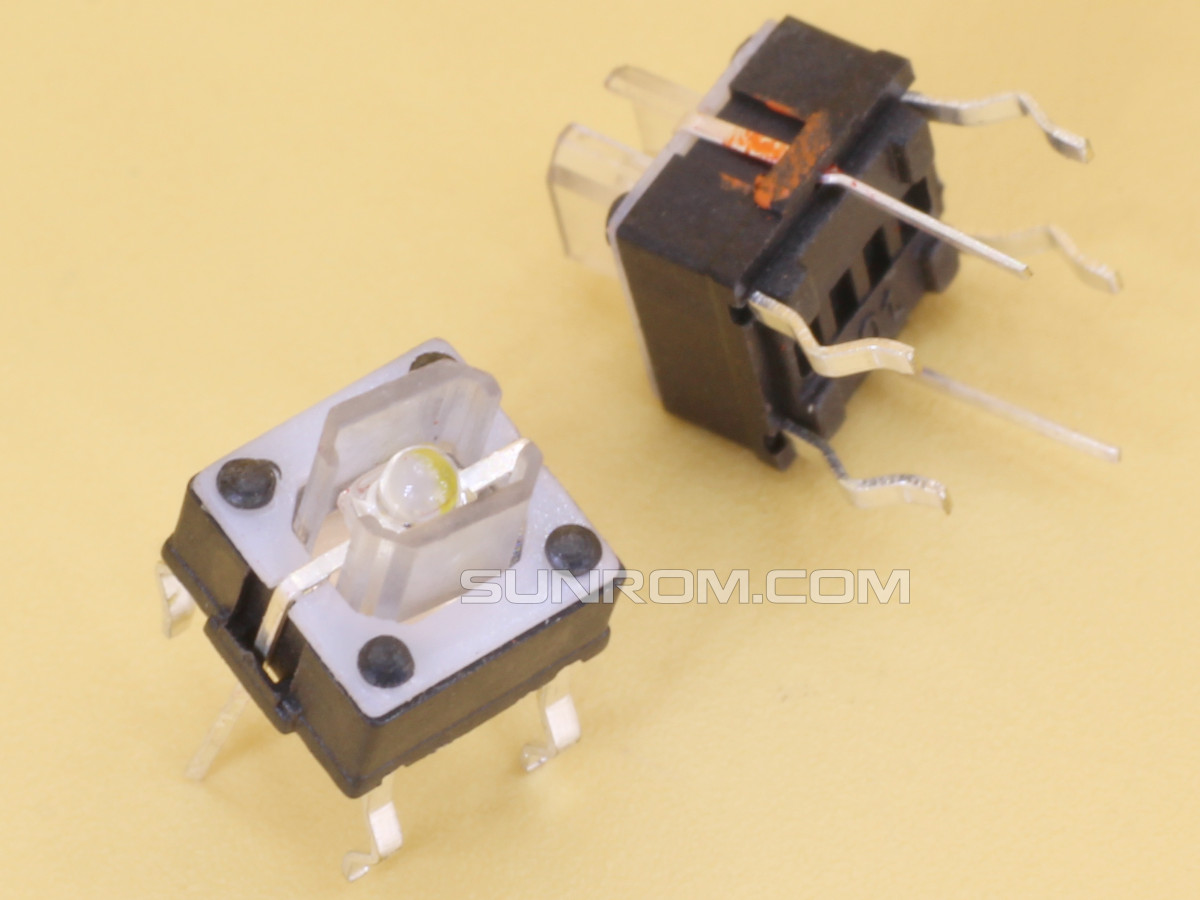 Switch 7x7x7mm TH with Yellow LED