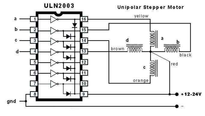 ULN2003 is 7x NPN Transistor Array with built in base resistor and diode for inductive loads, Example - Drive 12V relays & stepper motors from 3-5V MCU signal.