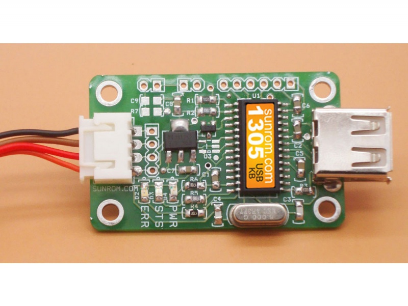 Accepts any USB Keyboard or USB Barcode Scanner and outputs serial data for every keypress or barcode reading