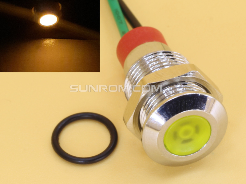 Yellow 10mm 3-6V DC Panel Mount Indicator LED with 15cm wire